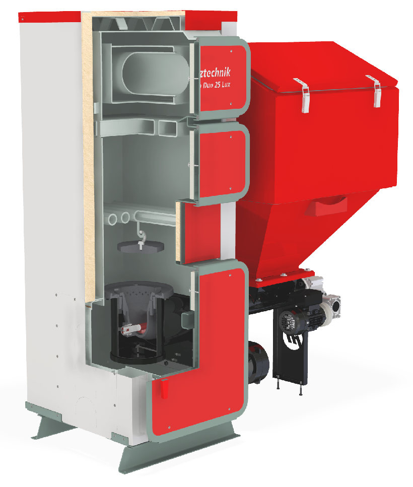 Стандартной комплектацией котла является горелка "Eko OBR" - ретортная горелка с поворотной чугунной коронкой, которая позволяет сжигать фракционный уголь «Эко-горошек» (5-25 мм) содержащего угольную пыль (до 40%). В зависимости от необходимого вида топлива котел может комплектоваться другими горелками. Для сжигания фракционного угля «Эко-горошек», угля размером 0-25 мм содержащего угольную пыль, пеллет и различной биомассы используется усовершенствованная горелка "TRIO" (опция). Для сжигания биотоплива (опилки, отходы зернопереработки, пеллеты и т.д.) устанавливается лотковая горелка "BIO".